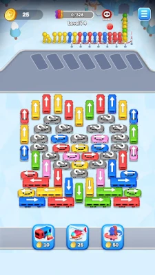 A experiência de jogo é fluida e cativante, graças aos controlos intuitivos que permitem deslizar os veículos com total facilidade nos ambientes 3D detalhados. Guie carros e autocarros com precisão, navegando sem esforço pelo trânsito congestionado para resolver os nós mais apertados. A diversidade de veículos, desde carros compactos ágeis até autocarros volumosos, adiciona uma camada extra de desafio e diversão, garantindo que cada sessão em Car Jam 3D - Parking Jam Games seja única. Seja um entusiasta de veículos clássicos ou um mestre em desafios de tráfego intenso, há sempre um novo tipo de manobra à sua espera.