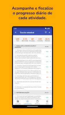 Simplifique a gestão diária de projetos de construção. Esta ferramenta permite registrar e acompanhar os serviços na obra através de um Relatório Diário de Obra (RDO) padronizado, garantindo preenchimento fácil e monitoramento eficiente do progresso.